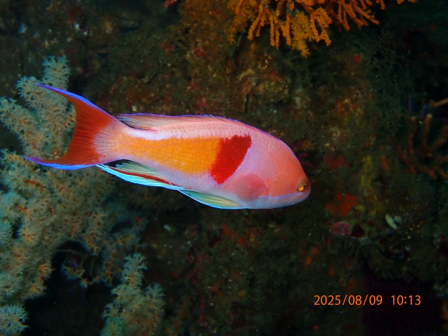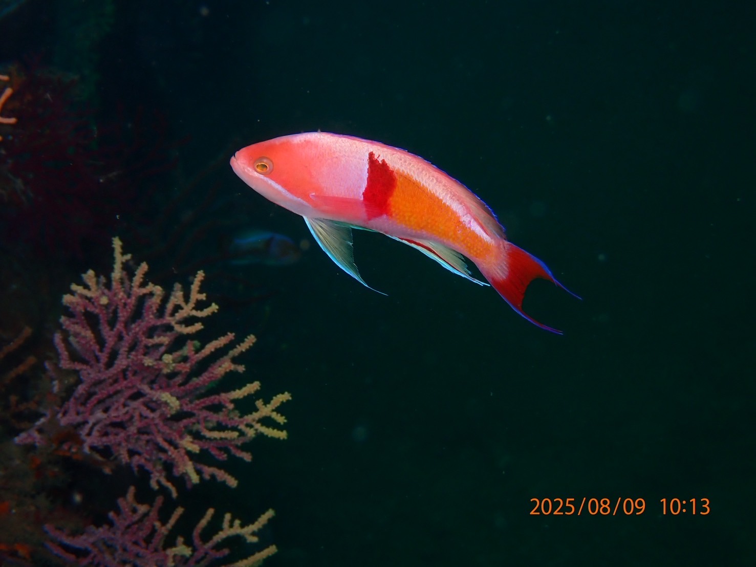 うっすらとイサキの大群、味の大群のシルエットだけは見えたので、透明度が良ければワイドも楽しめたな〜。